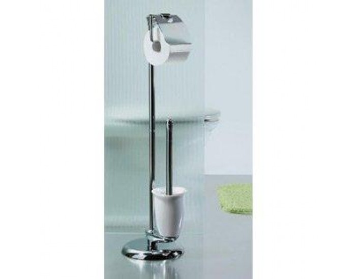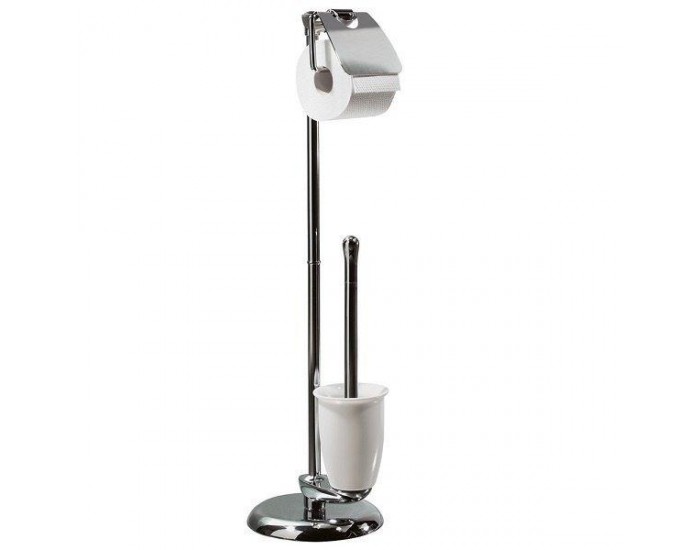 Высокий держатель для туалетной бумаги со щеткой в фарфоровой колбе прекрасно впишется в интерьер ванной комнаты. Подставка с интегрированным утяжелителем для высокой устойчивости.