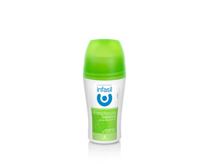 Дезодорант Infasil Freshness Dinamica, не содержащий спирта и со специально подобранным антибактериальным активным веществом, воздействует на образование неприятного запаха у источника, обеспечивая эффективность борьбы с запахом, клинически испытанную в течение 24 часов.