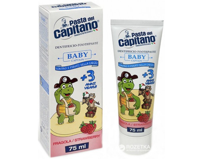 Нежная гелевая зубная паста Pasta del Capitano Со вкусом клубники, которая способствует поддержанию здоровых и сильных десен, а также полной защите молочных зубов благодаря своей формуле, обогащенной фтористыми солями и кальцием.