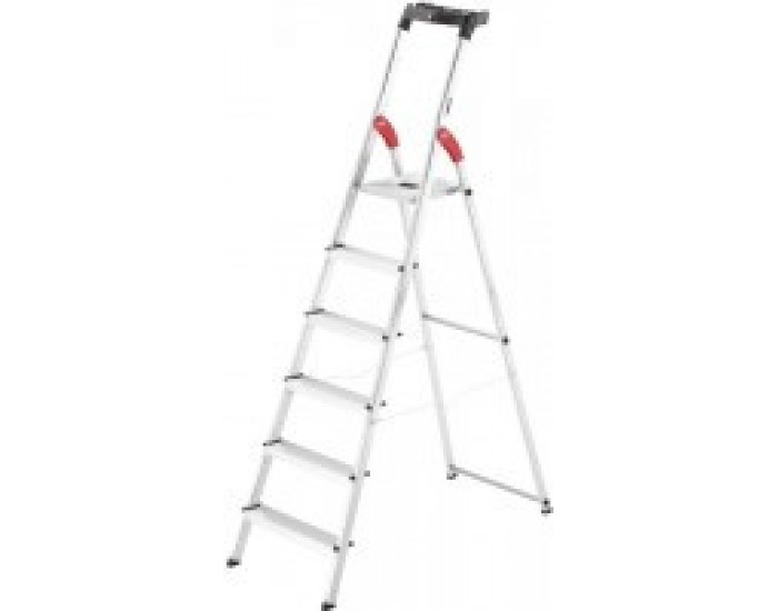 алюмінієві сходи з рифленням проти ковзання, протиковзька штепсельная ніжка, багатофункціональний лоток для зберігання інструментів, банок з фарбою або невеликих деталей, оцинкована сталева платформа з протиковзьким рифленням, більше вільного місця для колін завдяки паралельним поперечинам, надійне, високотехнологічне поетапне з'єднання ступенів заклепками