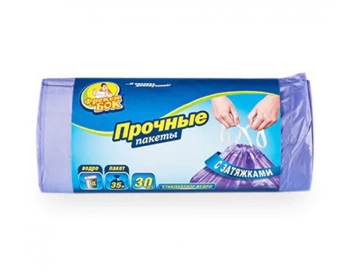 Мусорные пакеты Фрекен БОК 35 л с удобной затяжкой отлично подойдут для стандартного ведра 10-12 л.