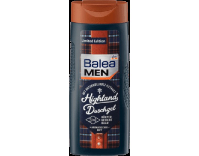 Гель для душа Балеа мужской с экстрактом красного сандалового дерева. Средство предназначается для ухода и очищения тела, лица и волос. Гель имеет приятный и свежий аромат бергамота и лимона. Balea Men 3 в1 Hightland обеспечивает нежное очищение и освежающий эффект. Мягкая формула нейтрального рН предотвращает пересыхание кожи. Без спирта, без алюминиевых солей, без наночастиц, без парабенов. Одобрен дерматологически