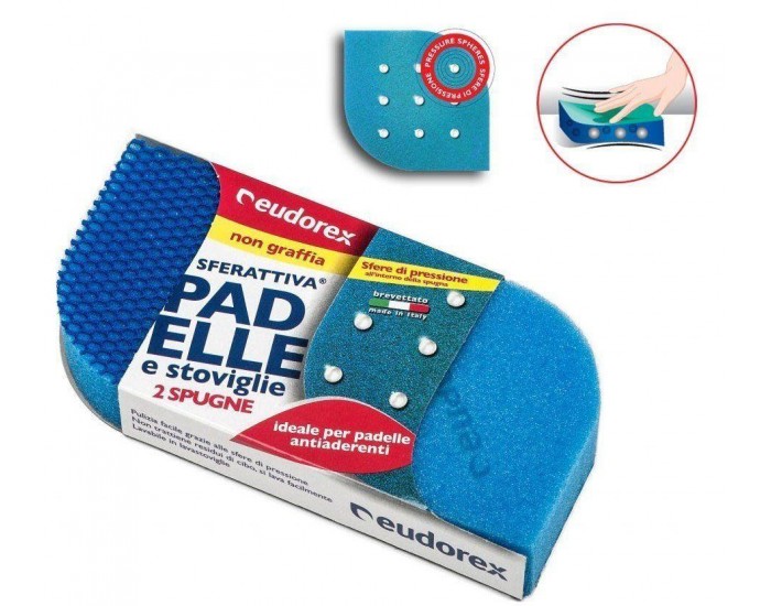 Новый революционный тип губки Eudorex с полиуретановыми шариками легко очищает все поверхности кухни, не царапая их. Активная сетка на очищающей поверхности губки легко удаляет всю грязь и жир.