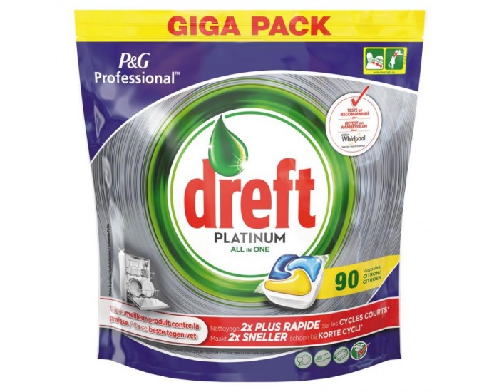 DREFT PLATINUM з лимоном таблетки які гарантують найкраще миття посуду у чистій посудомийній машині.