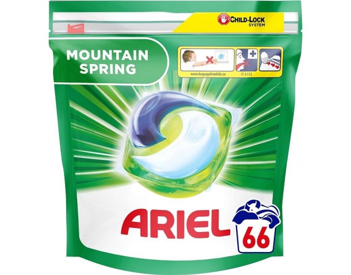 Гель, который находится внутри капсулы, обладает высококонцентрированным и суперэффективным составом. Его активные ПАВ мгновенно начинают действовать от 20°С. Тонкая мембранная пленка изготовлена из водорастворимого и экологичного материала, который мгновенно исчезает при контакте с жидкостью. Основные преимущества использования Ariel Allin1 Mountain Spring:1 капсулы хватает для стирки 4–5 кг белья;