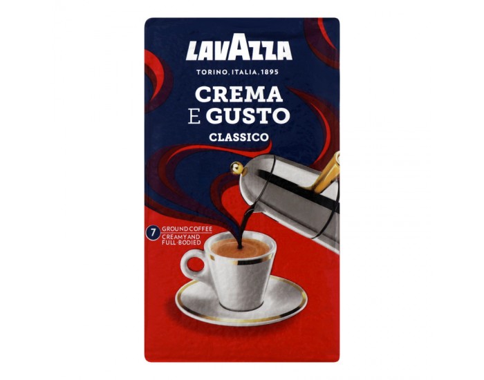 Натуральный молотый кофе Lavazza Crema&Gusto темной обжарки тонкого помола — идеальный выбор для любителей настоящего итальянского эспрессо.