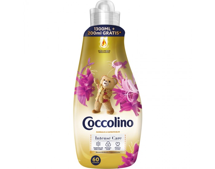 COCCOLINO INTENSE CARE SANDALO Кондиціонер для прання, концентрат Властивості. Концентрований кондиціонер для прання серії «INTENSE CARE» з технологією «PRO FIBRE», захищає волокна та зберігає яскравість кольорів. Надає речам довготривалий аромат сандалового дерева