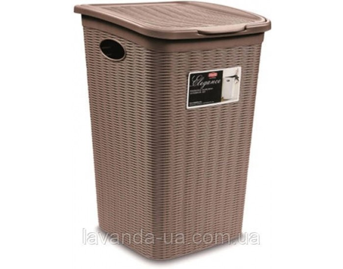КРАТКИЕ ХАРАКТЕРИСТИКИ Материал: полипропилен Обьем: 50 литров Высота: 54,5 см Ширина: 38 см Длина: 37 см Удобные боковые прорези для переноски Практичная плоская крышка Цвета в ассортименте: белый, синий, голубой, коричневый Приятный дизайн (стиль ротангового плетения) Штрих-код: 8003507300514 Производитель : Италия
