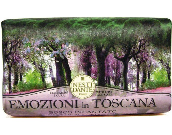 Великолепное растительное мыло премиум-класса Nesti Dante "Emozioni In Toscana. Очарованный лес" изготовлено по старинным рецептам и по традиционной котловой технологии, в составе мыла только натуральные оливковое и пальмовое масло высочайшего качества, для ароматизации использованы органические эфирные масла. Ежедневный ритуал красоты, любви и заботы не только для тела, но и для души. Однажды познакомившись со столь разной пленяющей Тосканой, вы будете вновь и вновь возвращаться к воспоминаниям и грезам о ее пламенных лесах, лугах, маленьких городишках, скалистых побережьях, терракотовых деревушках и волнующих ароматах Тосканы. Мыло "Очарованный лес" - легкий запах влажных листьев после дождя, мыло обладает антиоксидантными свойствами, тонизирует и укрепляет кожу. Изысканная флорентийская бумага, в которую завернуто мыло, расписана акварелью, на каждом кусочке мыла выгравирована надпись "With Love And Care (С любовю и заботой)".