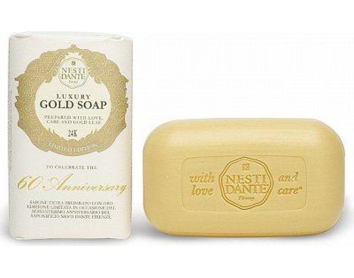 Высококачественное растительное мыло с золотом. Содержащиеся в мыле золотые частицы обладают уникальным комплексом свойств: доставляет в глубокие слои эпидермиса питательные и увлажняющие компоненты, стимулируют обменные процессы, восстанавливают и укрепляют клетки кожи. Кроме того, золото обладает выраженным противовоспалительным и матирующим эффектом. В дополнении к 24-каратам драгоценного полезного металла, мыльный слиток обладает ярким пудровым ароматом королевского ириса, символа Флоренции. "Nesti Dante" отметили свое 60-летие с королевским размахом, выпустив лимитированный тираж "Золотого мыла". Этот слиток пенящегося золота в 24 карата надолго запечатлеет в памяти успешное 60-летие Тосканской мыловаренной компании.