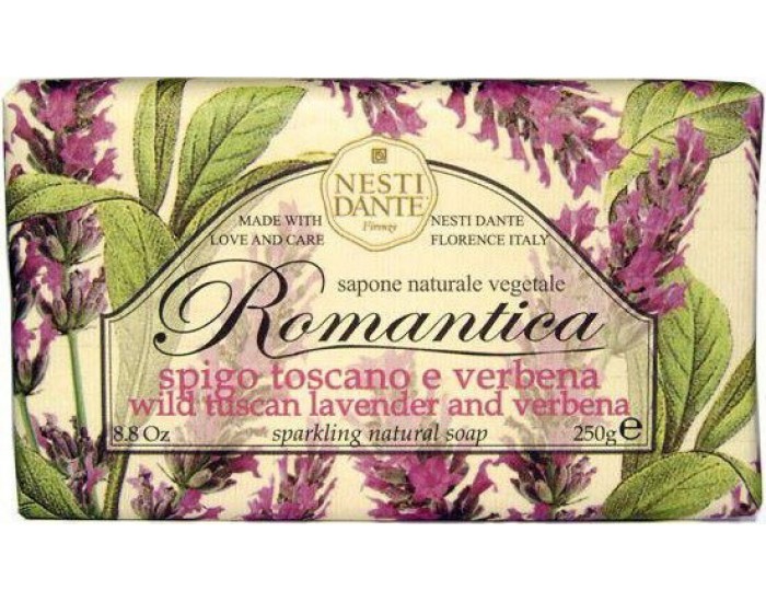 Натуральное мыло премиум-класса Nesti Dante "Romantica. тосканская лаванда и вербена" - два букета, бережно отобранные самые романтичные и эмоциональные ароматы, самые незабываемые моменты нашей жизни в магии цветов провинции Тоскана. Аромат лаванды оказывает умиротворяющее действие, повышает внимание, улучшает память и помогает справиться с депрессией. Аромат вербены - легкий, карамельно-леденцовый, свежий и терпкий одновременно. Легкая, приятная композиция напомнит свежесть лепестков омытых утреней росой.