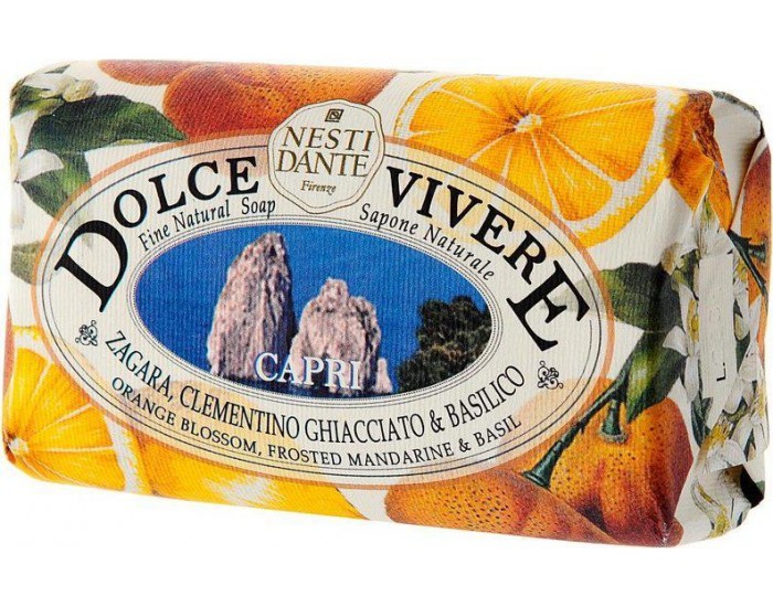 Великолепное растительное мыло премиум-класса Nesti Dante "Dolce Vivere. Капри" изготовлено по старинным рецептам и по традиционной котловой технологии, в составе мыла только натуральные оливковое и пальмовое масло высочайшего качества, для ароматизации использованы органические эфирные масла. Мыло "Dolce Vivere" переносит вас в самые очаровательные места Италии, прекрасные и вдохновляющие виды заливов, городов и деревень, полных очарования, культуры и истории. Удивительный и специфичный аромат цветов апельсина, замороженного мандарина и базилика с чарующим и романтичным мифом и легендой об искусстве острова Капри… Изысканная флорентийская бумага, в которую завернуто мыло, расписана акварелью, на каждом кусочке мыла выгравирована надпись "With Love And Care (С любовью и заботой)".