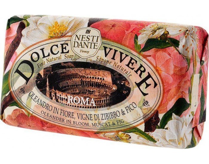 Великолепное растительное мыло премиум-класса Nesti Dante "Dolce Vivere. Рим" изготовлено по старинным рецептам и по традиционной котловой технологии, в составе мыла только натуральные оливковое и пальмовое масло высочайшего качества, для ароматизации использованы органические эфирные масла. Мыло "Dolce Vivere" переносит вас в самые очаровательные места Италии, прекрасные и вдохновляющие виды заливов, городов и деревень, полных очарования, культуры и истории. Рим - взрывная смесь сладкого аромата и сахарных нот создает атмосферу вечной молодости и красоты. Почувствуйте теплое прикосновение цветов олеандра вместе с мускатом и инжиром. Изысканная флорентийская бумага, в которую завернуто мыло, расписана акварелью, на каждом кусочке мыла выгравирована надпись "With Love And Care (С любовю и заботой)".