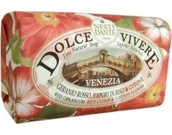 Венеция в представлении не нуждается. Самый необычный в мире город, в котором вместо улиц с проезжей частью и тротуаром, проложены каналы, по которым курсируют речные паромы и гондольеры. Венецианский карнавал, который проходит ежегодно перед Пасхой, прославил этот город на весь мир, и по сей день является одним из самых значимых событий для Италии. Романтическая атмосфера этого города, дополняемая гондольерами, приглашающими на экскурсию, удивительными мостами, в числе которых известный мост в районе Риальто, а также неизменными окнами домов с цветущей в них геранью хорошо передана в мыле «Венеция». Ароматы этого мыла – лен, и, конечно же, герань, которая столь любима жителями этого города.