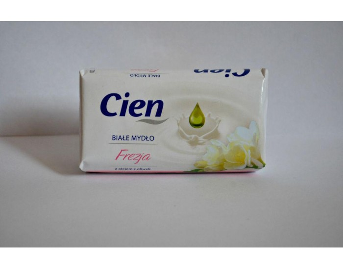 Твердое мыло Cien с нежным ароматом фрезии. Очень нежное к вашей коже, не пересушивает ее и имеет ухаживающий эффект благодаря содержимому в нем оливковому маслу.