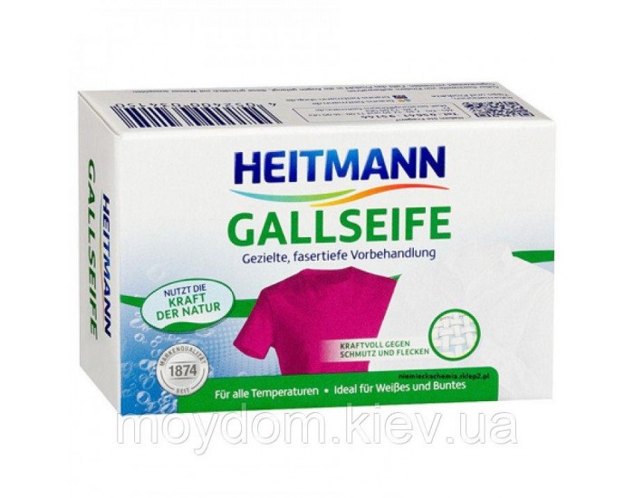 Мыло-пятновыводитель HEITMANN Gallseife отлично справляется с разными пятнами, такими как жир, макияж, кровь, жир, белковые пятна и др., как на белых, так и на цветных тканях.