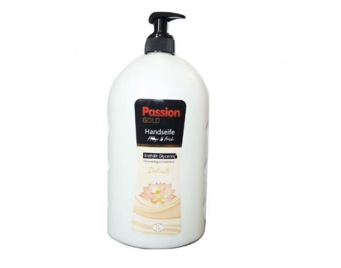 Жидкое мыло для рук Passion Gold Handseife Delicate (1000 мл). Мыло с дозатором содержит деликатный состав и приятную консистенцию,которую легко смыть.Кроме того,отличная пена обволакивает тело нежной пеной и оставляет на ней приятный деликатный аромат.Делает кожу чистой и комфортной каждый день.