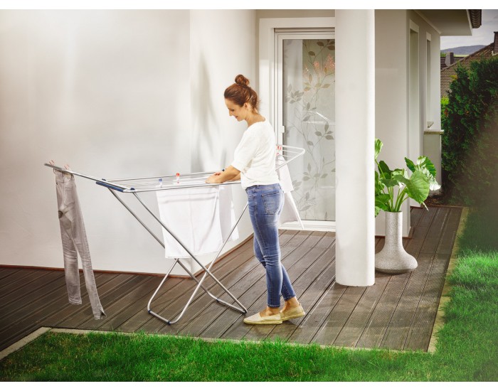 Напольная сушилка для белья Leifheit Siena 180 очень проста в установке, для хранения легко складывается в плоскую конструкцию, занимающую немного места.