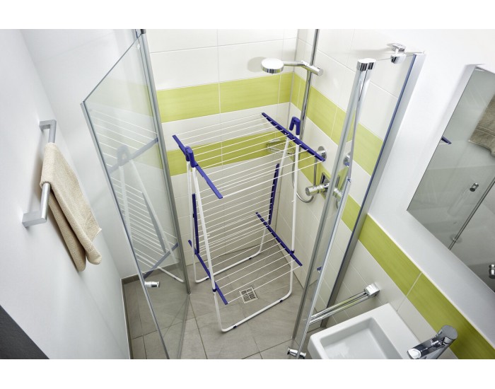 Учитывая то что занимаемая площадь опоры сушилки Leifheit Tower 190 составляет 66 х 50 см, она отлично подходит для установки в душевой кабине. Ножки сушилки Tower 190 оснащены защитными пластиковыми колпачками, что предотвращает повреждение поверхности пола или душевой кабины.