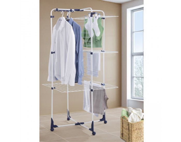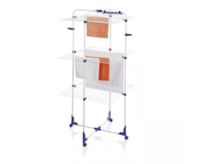Напольная сушилка для белья Leifheit Tower 340 (81455) очень легко собирается, в сложенном виде занимает немного места (все горизонтальные уровни складываются, две стороны сворачиваются, образуя плоскую конструкцию, идеальную для хранения).
