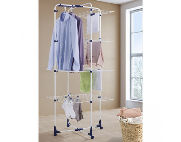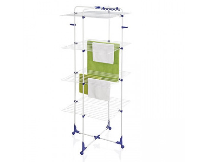 Напольная сушилка для белья Leifheit Tower 450 (81456) очень легко собирается, в сложенном виде занимает немного места (все горизонтальные уровни складываются, две стороны сворачиваются, образуя плоскую конструкцию, идеальную для хранения).
