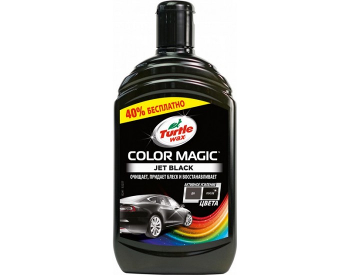 Полироль для черного автомобиля Turtle Wax Color Magic Black - цветообогащённая черная полироль с отличным очищающим и цветомаскирующим действием. Цветообогащённая черная полироль для автомобиля, отличается тем, что фактически, сливается с общим тоном лакокрасочного покрытия кузова, усиливая его исходный цвет, что максимально эффективно может именно черная автополироль. Полироль Color Magic черный также помогает скрыть мелкие дефекты лакокрасочного покрытия путём заполнения таковых пигментированным составом, выравнивающим плоскость светоотражения. Преимущества: Черная полироль для авто - обеспечивает долговременную защиту Выпускается в восьми базовых цветах, подходящих под широкую гамму оттенков Полироль для автомобиля черного цвета, подходит для обработки лакокрасочного покрытия всех оттенков чёрного. От цвета "мокрый асфальт" до насыщенного чёрного цвета, а также баклажанного цвета Применение: Нанесите полироль тонким слоем с помощью аппликатора на небольшой участок обрабатываемой поверхности. После появления лёгкого матового налёта, располируйте чистой мягкой тканью или микрофиброй до появления глубокого блеска. Также, пофрагментарно, обработать всю оставшуюся поверхность лакокрасочного покрытия кузова автомобиля. Предупреждения: Эффективность заполнения царапин и потёртостей черных авто зависит от их формы, возраста и размера. Мельчайшие царапины и потёртости маскируются практически полностью после первой же обработки. Повторная обработка значительно улучшит косметический эффект
