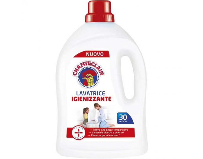 Chante clair Lavatrice Igienizzante - универсальное, дезинфицирующее, жидкое средство для стирки в стиральных машинах. Средство эффективно действует против даже самых стойких пятен и загрязнений, а также удаляет микробы и бактерии, обеспечивая идеальную чистоту и дезинфекцию белья. Его концентрированная формула активна даже при низких температурах и подходит для стирки белья всей семьи