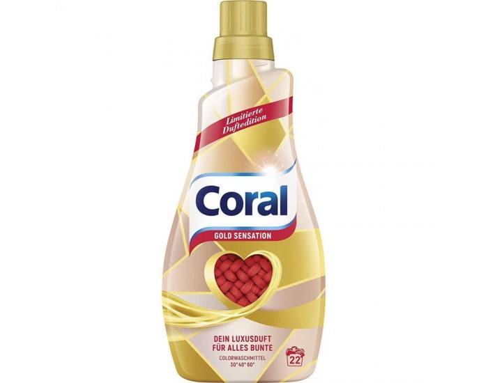 Гель для стирки цветных вещей Coral Gold Sensation парфюмированный. Жидкий порошок с воздушной арома-композицией с ванильными нотками и нежным абрикосовым цветом освежит выстиранные вещи, сохранит яркость цветов и волокна тканей. Бутылка жидкого средства рассчитана на 22 цикла стирки. Гель можно использовать как для машинного, так и для ручного способа стирки. Температурные режимы - от 30 до 60 градусов по Цельсию.