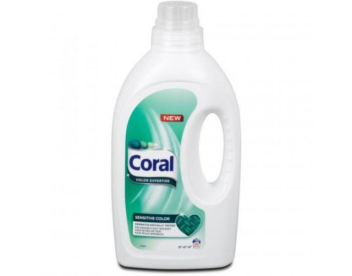 Гель предназначен для стирки цветного белья и отличается от других вариантов Coral существенно меньшим количеством отдушки и более мягкой формулой, а также отлично подходит для стирки детской одежды. Возможно использовать для стирки шерсти, шелка, кашемира. Рабочий диапазон температур 30-60 С, дозировка 55 мл средства.