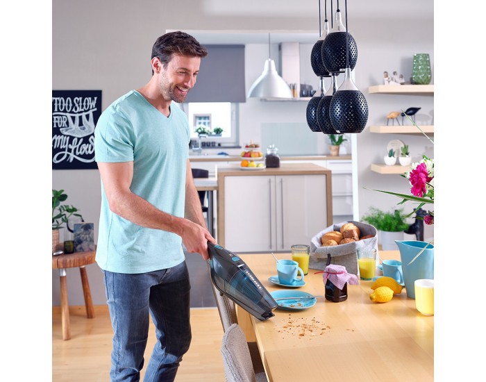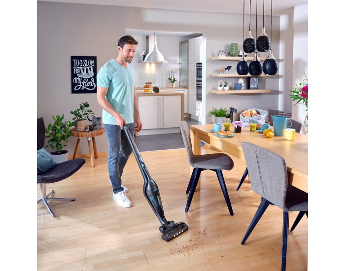 - Универсальное устройство 2-в-1, состоящее из беспроводного пылесоса для пола и съемного ручного пылесоса.
