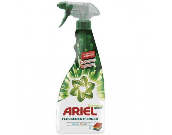 Засіб для виведення плям для білих та кольорових тканин, що містить активну формулу кисню, завдяки чому ми досягнемо помітних результатів після першого прання. Рідина на основі унікальних інгредієнтів, яка виводить навіть найстійкіші жири та інші плями від їжі та напоїв. Засіб виведе як свіжі, так і висохлі плями. Ariel Fleckentferner можна використовувати з іншими миючими засобами. Продукт гарантує ідеальні результати від 30 ° C. Рідкий спрей Ariel Fleckentferner не пошкоджує тканини, доглядаючи за їх волокнами під час прання. Завдяки інноваційній формулі всі кольори залишаються незмінними та зберігають свої початкові відтінки. Виріб для кольорових та білих тканин.