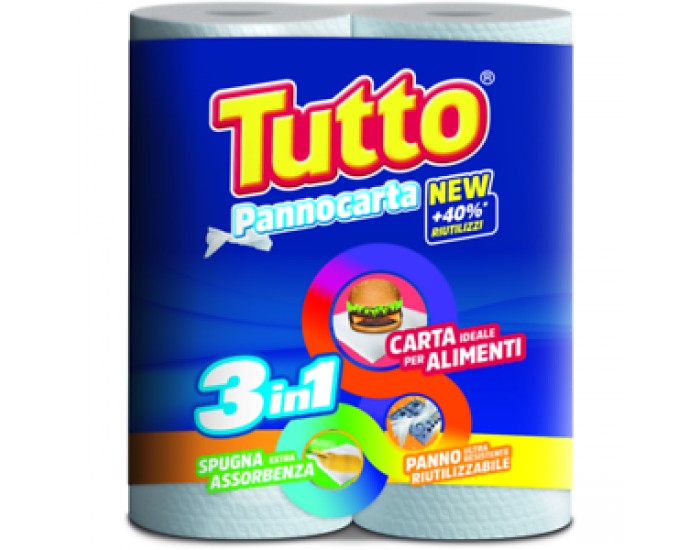 РУШНИКИ ПАПЕРОВІ БАГАТОРАЗОВІ TUTTO PANNOCARTA 2 ROTOLI 3in1