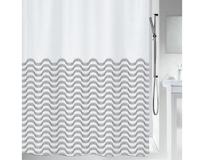 Шторка для ванной Spirella polyester Vagues 7610583201607 – элегантная шторка станет ярким акцентом вашей ванной комнаты. Шторка удобная в эксплуатации и мягкая на ощупь. Изделие изготовлено из прочного полиэстера, который не пропускает брызги воды и задерживает влагу внутри ванны. Утяжелитель, вшитый в нижний край шторки. Верхний край усилен двойным загибом с пластиковыми отверстиями для колец.