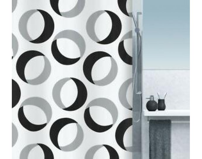 Текстильная шторка изготовлена из винила, пропитана специальным водоотталкивающим составом, что делает ее плотной и прочной. Шторка плотно прижимается к ванной и сохраняет свою форму благодаря специальному утяжелителю, вшитому в нижний край шторки. Верхний край усилен двойным загибом с пластиковыми отверстиями для колец.