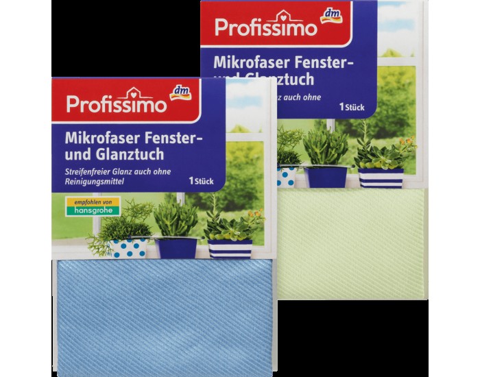 - Салфетка из микрофибры Profissimo создает блеск без разводов даже без моющего средства.
