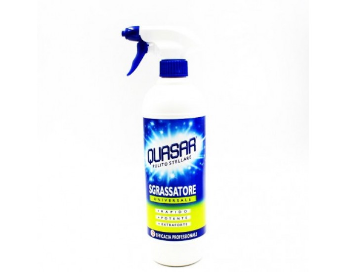 - Quasar SGRASSATORE эффективно удаляет все виды загрязнений, придавая обработанным поверхностям блеск. Эффективный и очень прочный для кухонь, духовок, плит, вытяжек, грилей, слайсеров, рабочих поверхностей, особенно грязных полов, жалюзи, механических деталей, зубчатых колес и стальных материалов. Он также может быть использован в качестве предварительной обработки тканей.