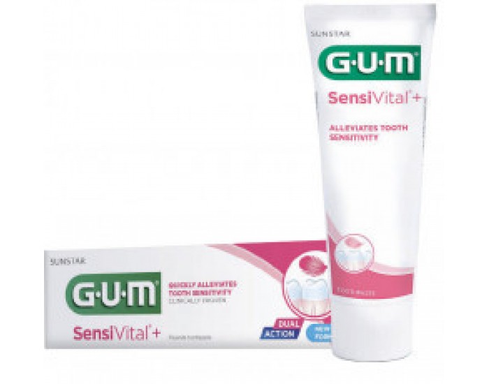 Зубна паста GUM Sensivital + забезпечує тривале полегшення чутливості зубів і захист пошкодженої емалі.