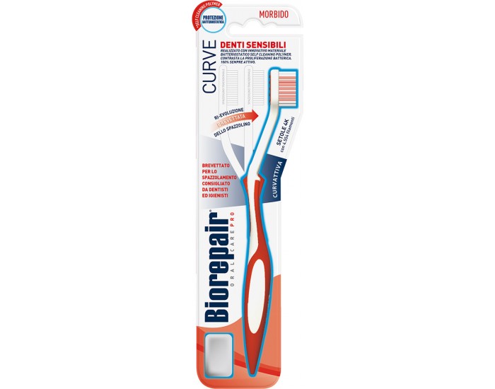 Разработана итальянскими стоматологами-гигиенистами для совершенной ежедневной чистки зубов, десен и языка. Уникальный запатентованный изгиб Biorepair Curvactive, специальная форма головки и 4554 мягких щетинок позволяют более плотно прилегать к поверхности зубов, что значительно повышает качество чистки зубов, межзубных промежутков и участков вдоль линии десен без повреждений. Мягкие, конусообразные щетинки с тщательно закругленными лазером кончиками эффективно и безопасно, не раздражая чувствительные участки, удаляют налет и пигментацию даже из самых труднодоступных поверхностей. Угол 210° позволяет избежать ненужного давления на десны и зубы, а специально разработан, мягкий силиконовый очиститель, на задней части щетки, позаботится о чистоте щек и языка. Все детали щетки изготовлены из инновационного, запатентованного бактериостатического покрытия SCP (самоочищающийся полимер), благодаря которому бактерии не могут расти и размножаться. Бактериостатическое свойство не меняется и постоянно остается эффективной.